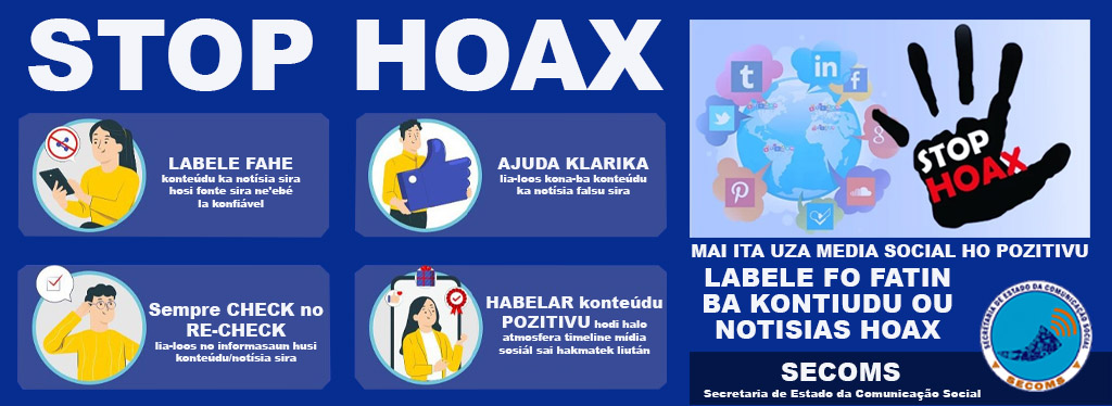Liu husi feature ne’e SECOMS ho VIP TV bolu bai ta hotu ne’ebe utiliza medial sosial atu kontribui mos ba dezemvolvimentu nasional liu husi publika informasaun lo’os no laos hoax nian ne’ebe la kontribui ba paz no seguransa nasaun nian. Mai hamutuk hateten Lae ba Informasaun La lo’os ou HOAX. Stop HOAX, labele fo fatin ba HOAX.