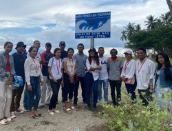 Grupu Voluntariu Jenesys ba Prevensaun Dezastre foto hamutuk ho autoridade lokal Suku Madohi hafoin monta sinais kona ba tsunami. Foto: Dok Grupu Jenesys
