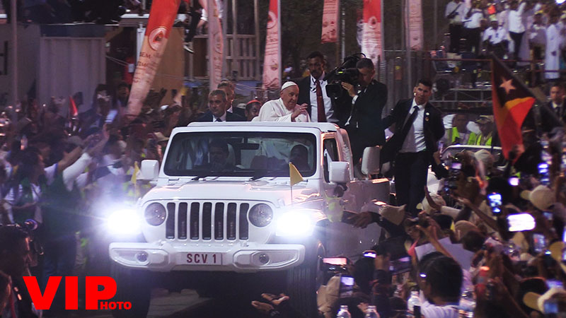 Papa Francisco fo bensaun ba sarani sira hafoin misa santidade iha Tasi Tolu, Tersa (10/9/2024). Photo: VIPhoto/Evangelisto Santos Meilana