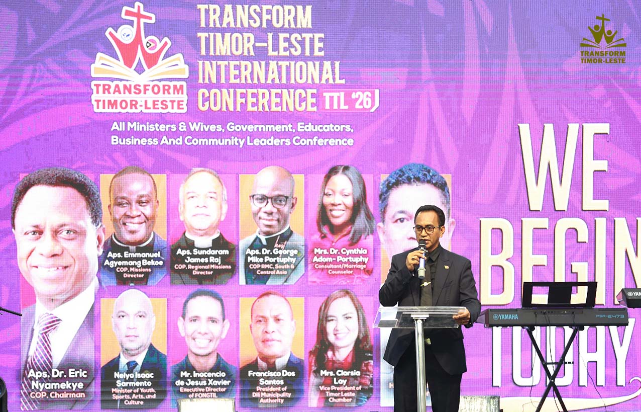 DILI, www.news-viptv.com – For the first time during the era of independence, the Christian Community of Timor-Leste held the International Conference Transform Timor-Leste 2026, led by the Church of Pentecost Global in collaboration with the business communities and the government. The theme was Transforming Society Through the Gospel and the Power of the Holy Spirit. The event was held from 27-28 March 2026, at the Ginacio Desporto de Dili. More than 500 participants joined the conference in-person from Indonesia, Brazil, U.S.A, Singapore and India.
